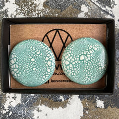 LAVVŌ Large porcelain stud earrings: white crackle over mint listed in: