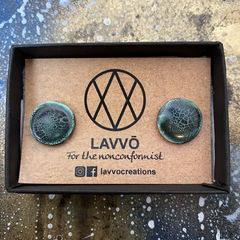 LAVVŌ porcelain stud earrings: black crackle over mint listed in: