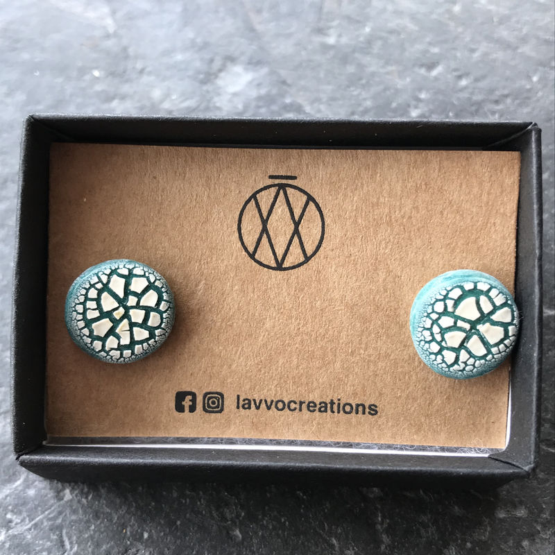 LAVVŌ porcelain stud earrings: white crackle over green listed in: