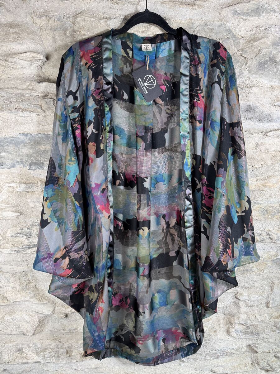 ORIGINAL KIMONO style jacket UK8 to UK18: black, blue, grey, pink, floral, silver threads listed in: