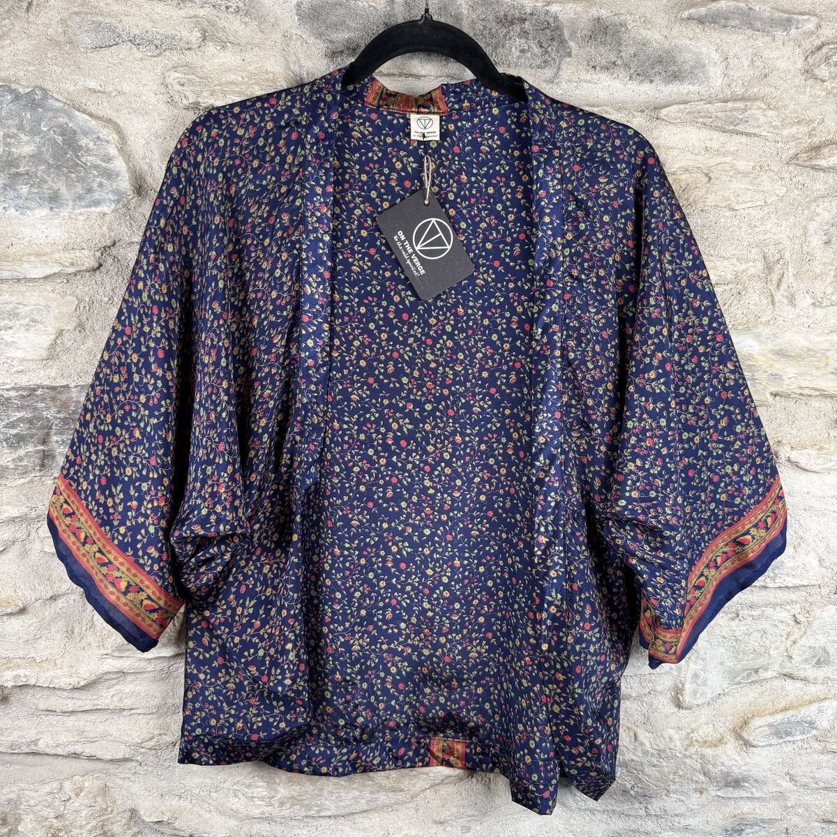 PETITE KIMONO STYLE JACKET UK8 to UK12: navy blue, floral listed in: