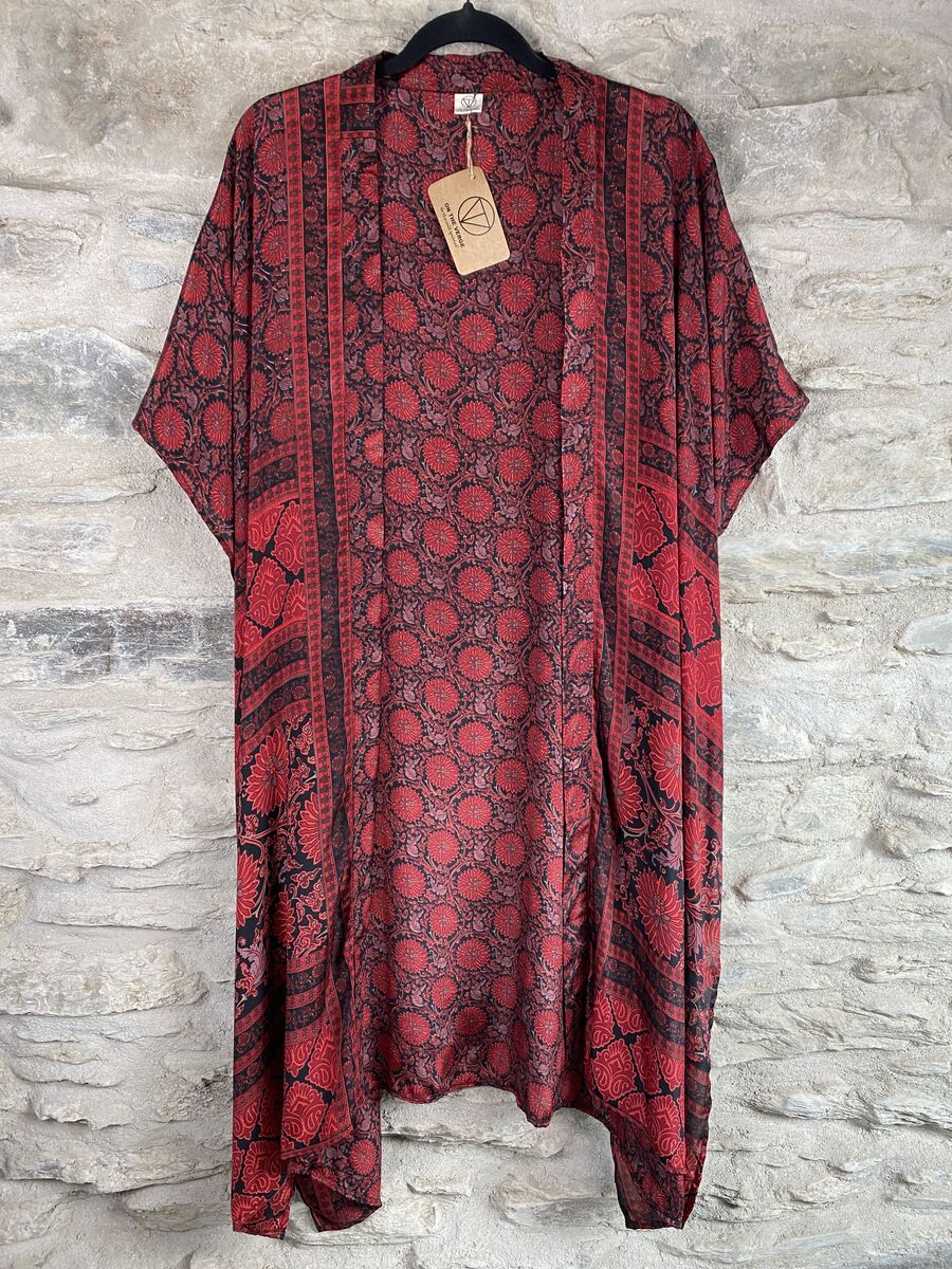 SHORTER LONG KIMONO STYLE JACKET ONE SIZE UK6 to 22: classic and stylish black, red, floral listed in: