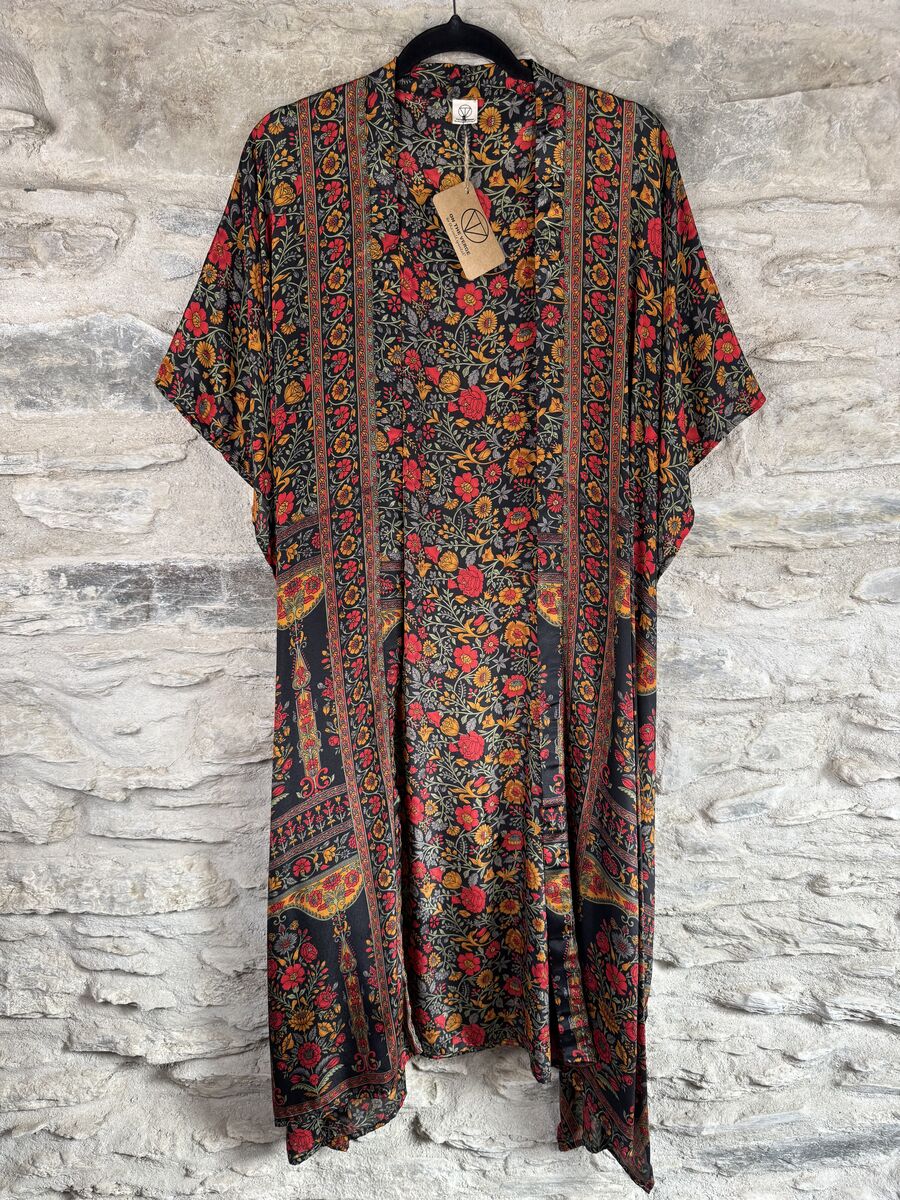 SALE // LONG KIMONO STYLE JACKET ONE SIZE UK10 to 28: black, yellow, red, floral listed in:
