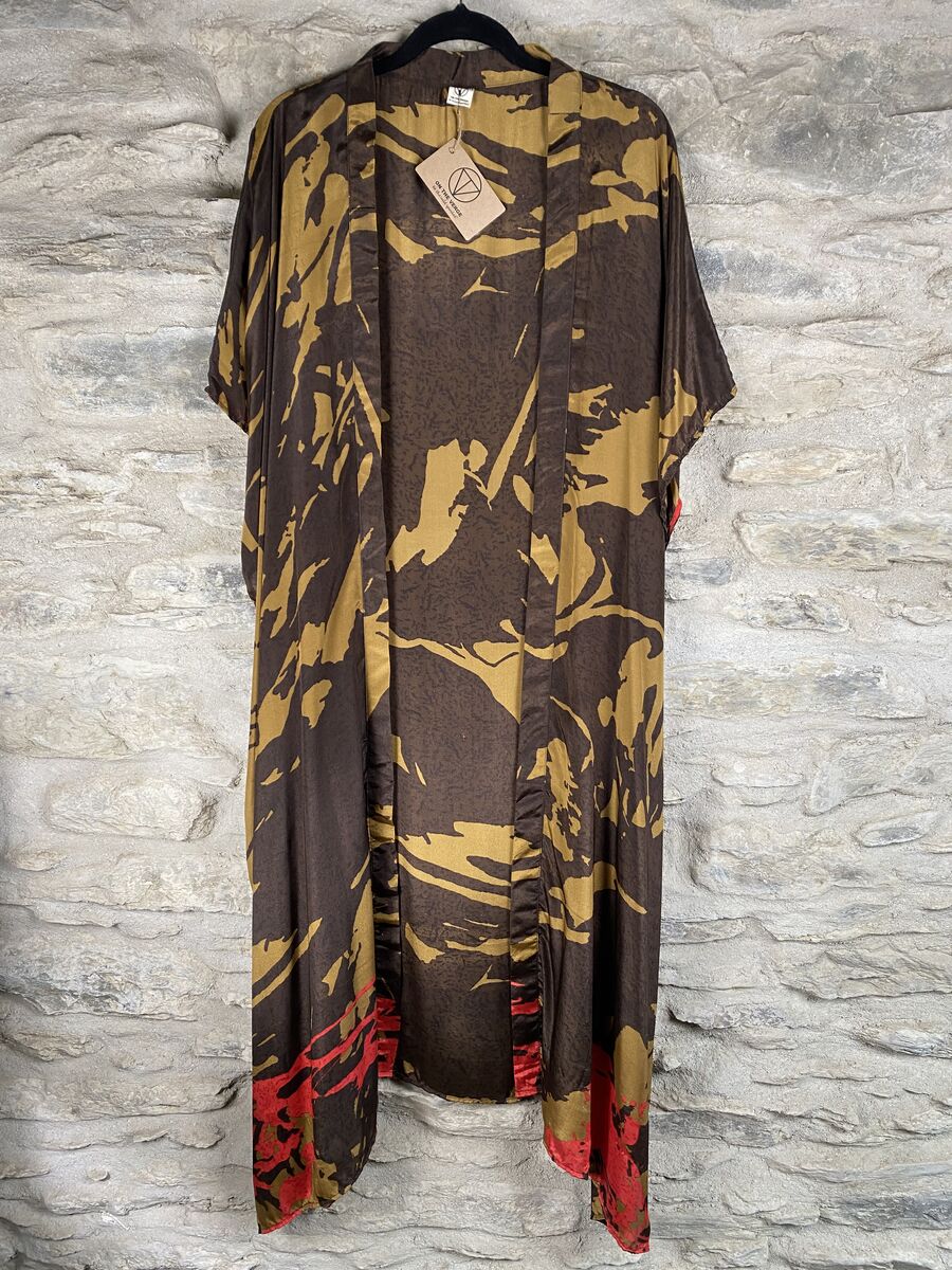 SALE // LONG KIMONO STYLE JACKET ONE SIZE UK10 to 28: brown, sand, abstract listed in: