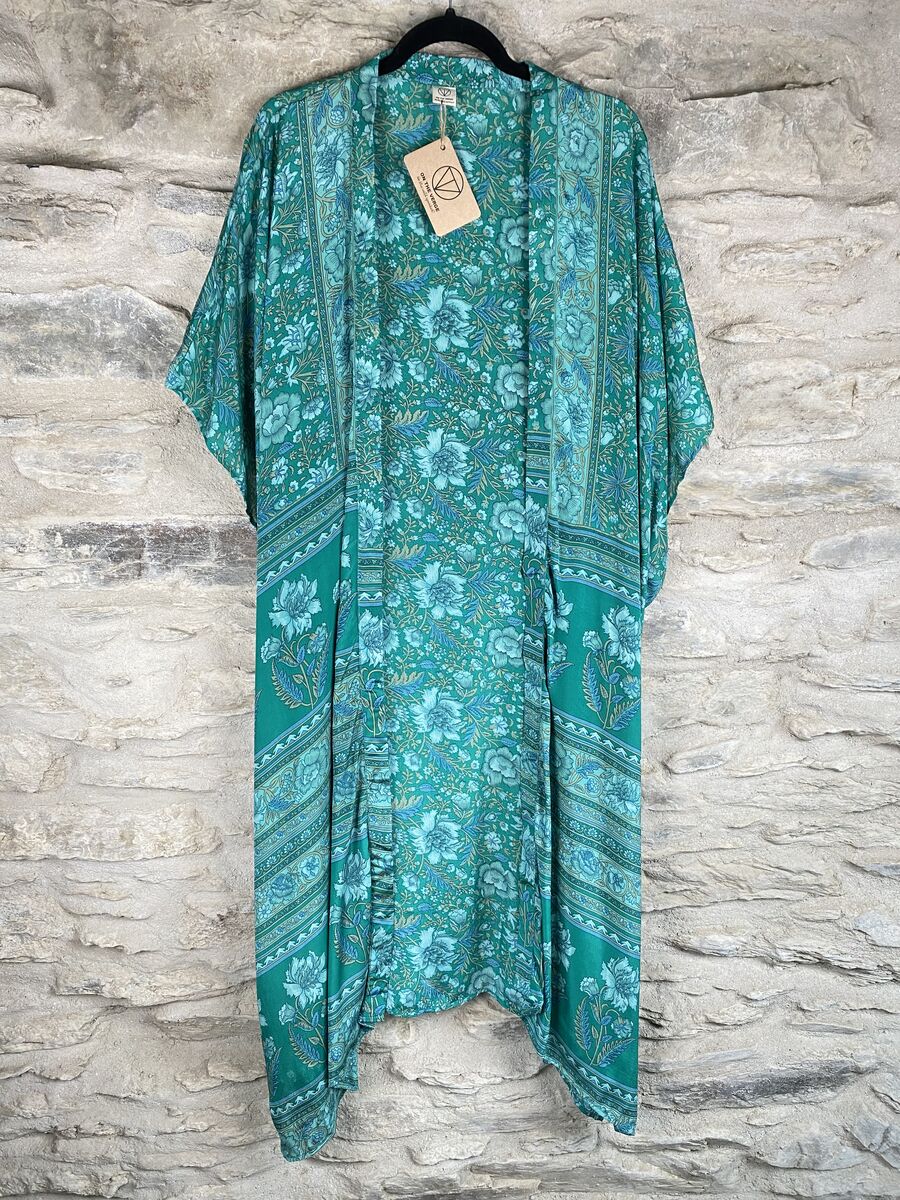 SALE // LONG KIMONO STYLE JACKET ONE SIZE UK10 to 28: mint green, floral listed in: