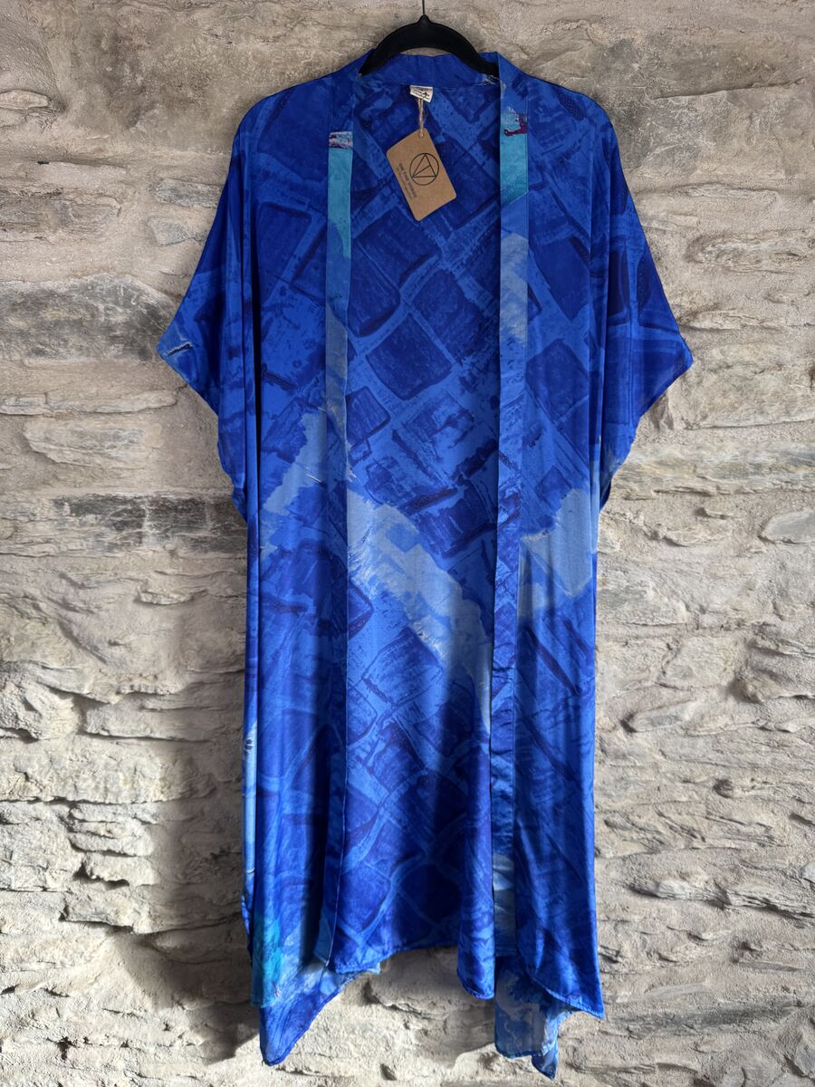 SALE // LONG KIMONO STYLE JACKET ONE SIZE UK10 to 28: shades of blue listed in: