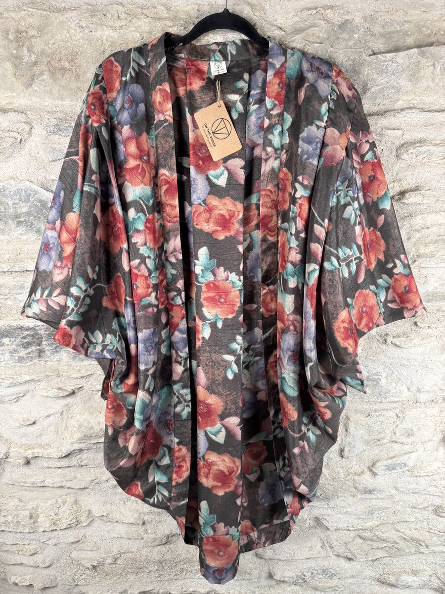 SALE // ORIGINAL KIMONO style jacket UK8 to UK14 POLY like RAW SILK: grey, floral, multicolour listed in: