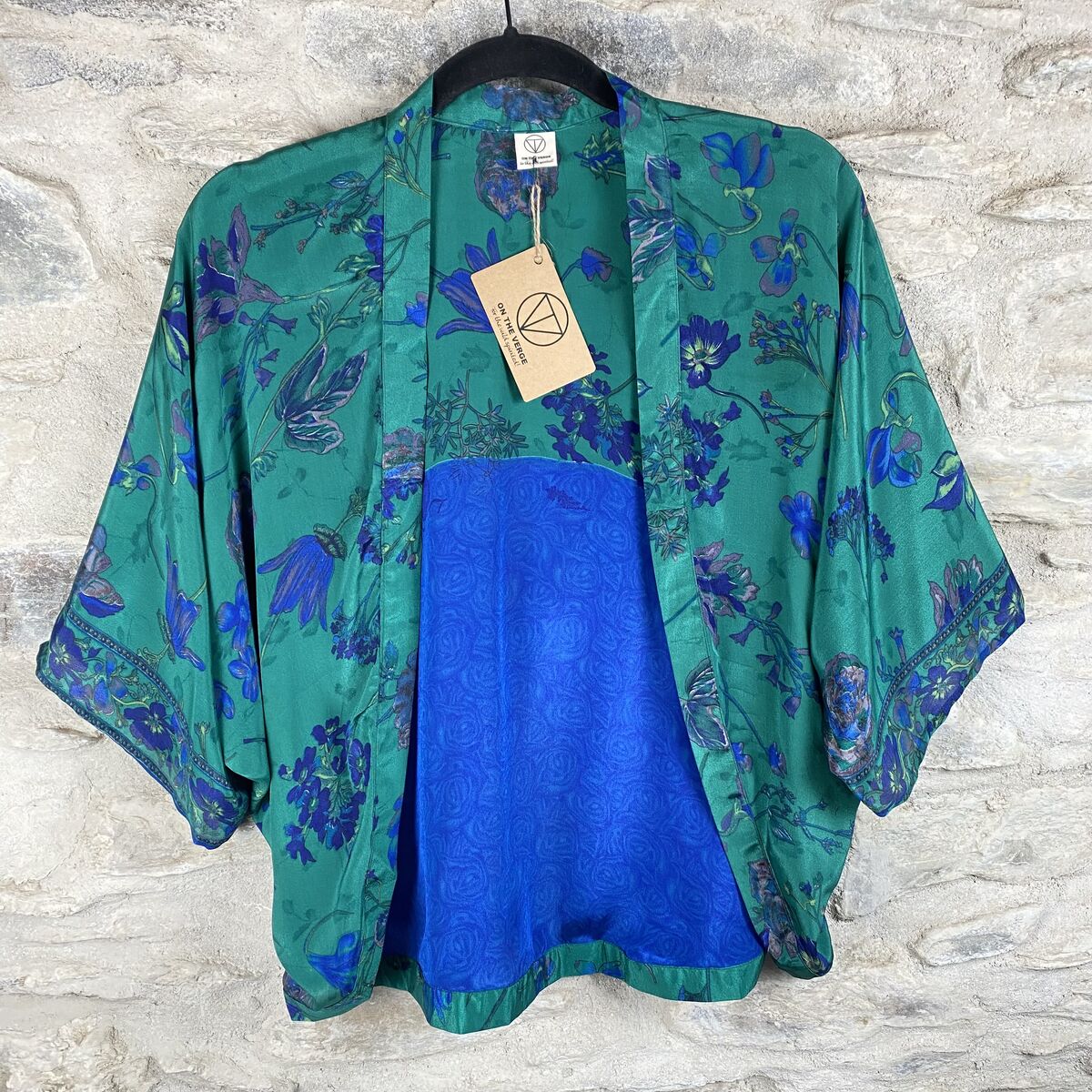 SALE // PETITE KIMONO STYLE JACKET UK8 to UK12: emerald green, blue, floral listed in: