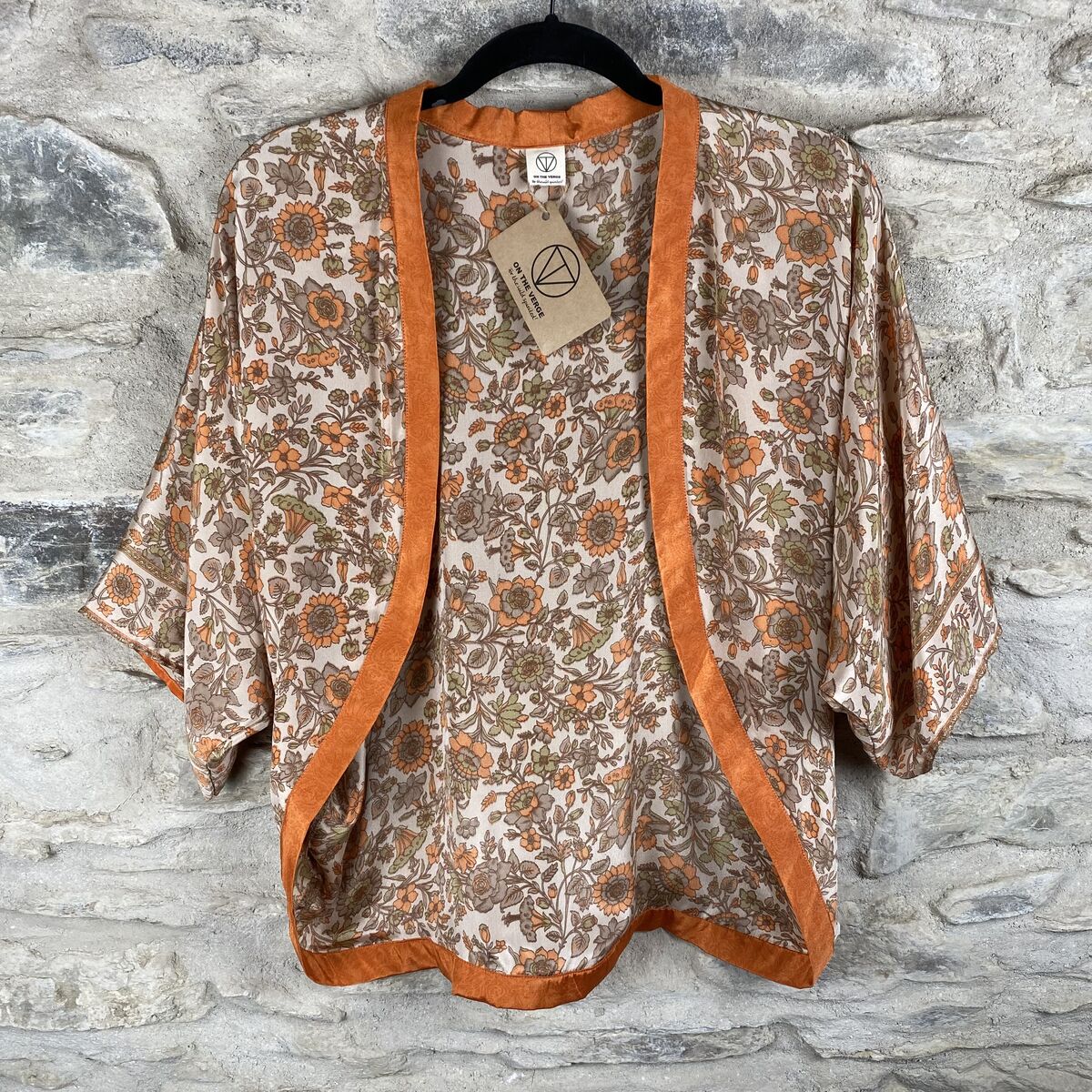 Petite kimono style jacket, made out of polyester fabric, extremely soft and easily confused with silk.