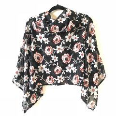 'LA BOHÈME' cowl neck hooded top: see-through, black and white, floral listed in: